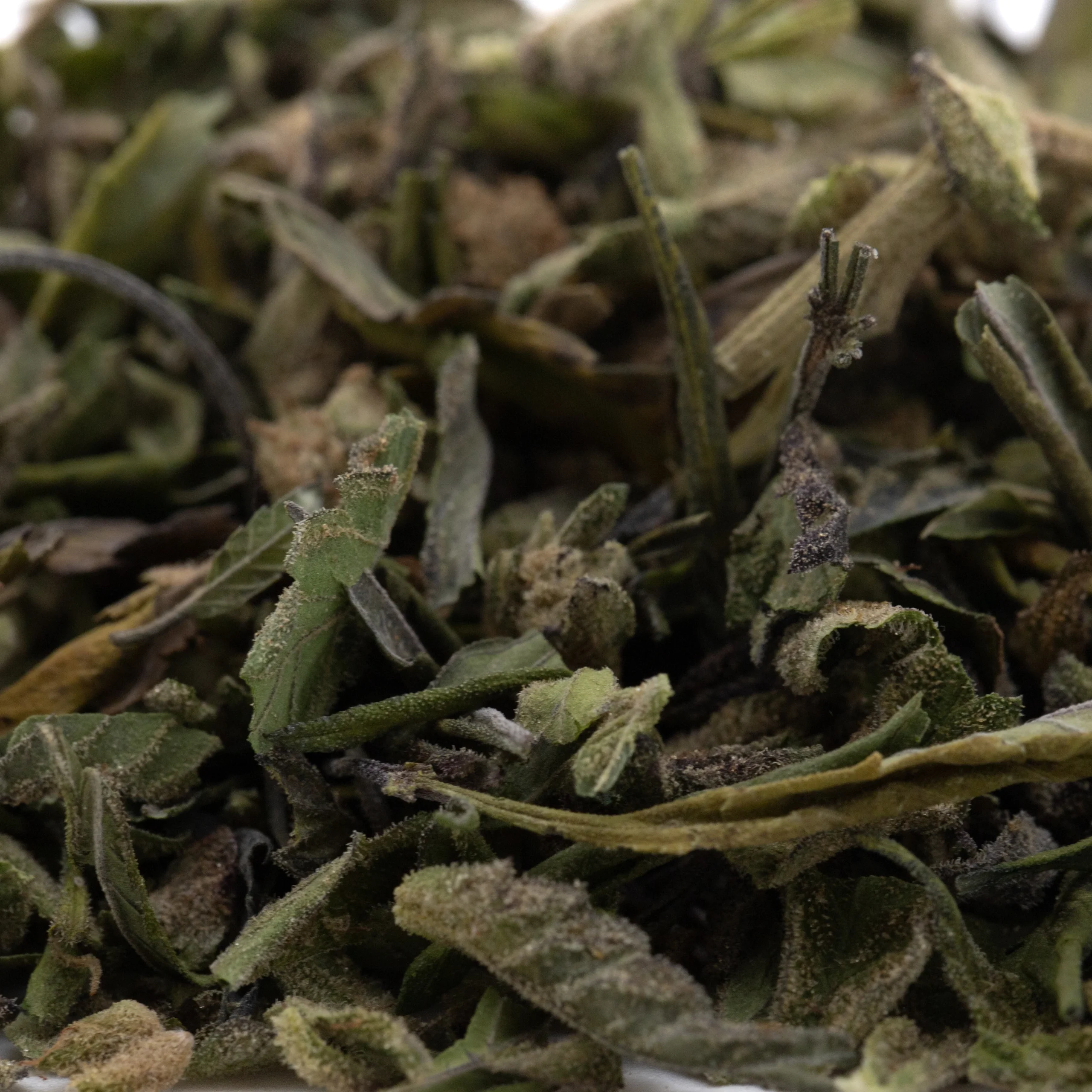 Bahama Bussdown Hybrid THCa trim consists of trichome-rich sugar leaves and small flower fragments collected from greenhouse-grown hybrid THCa plants.